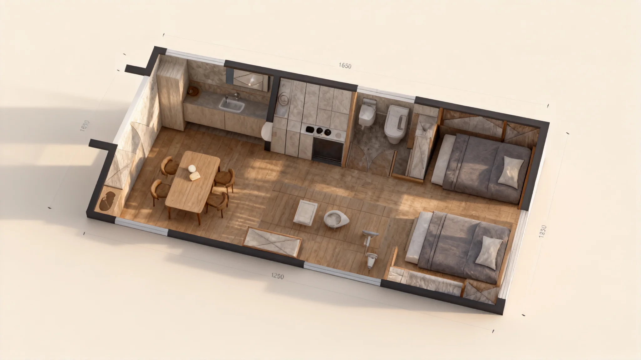 帮我把这个住宅平面图转换成房屋的等距逼真3D渲染图