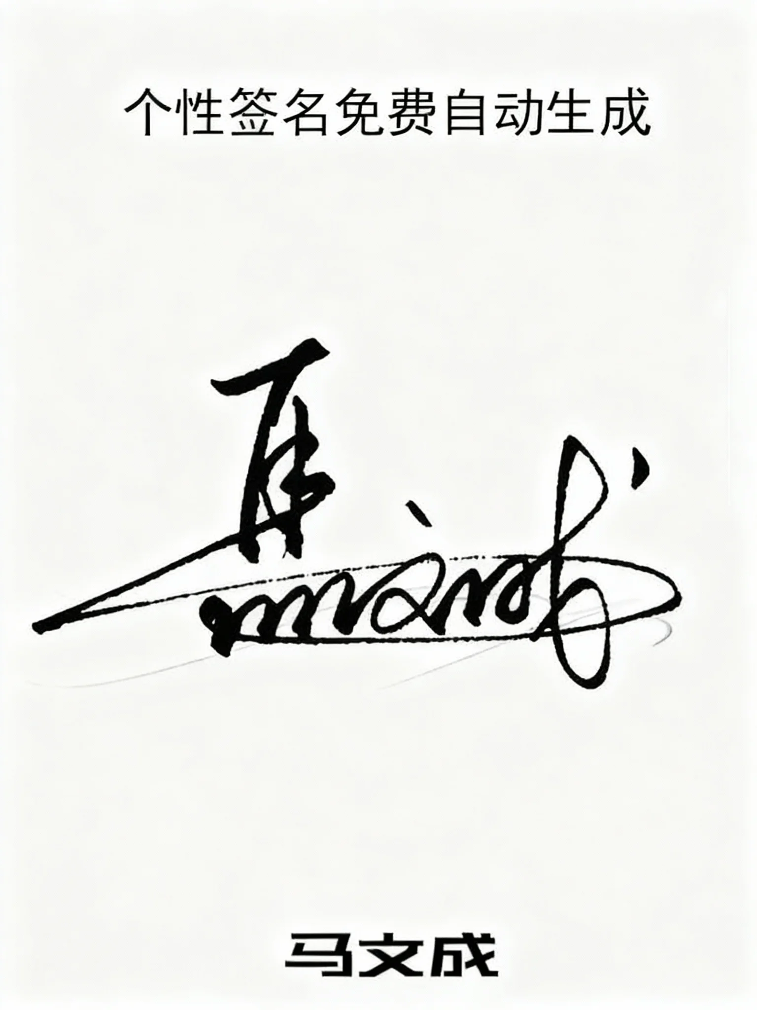 艺术大师级签名字体设计:马文成:字体飘逸,奔放,流畅而又磅薄大气,仿名星签名草书,钢笔字效果,粗细有致,文字之间有连笔,有装饰线条。签名艺术感极强,干净的白色背景,无水印,大面积留白,适用于签名。