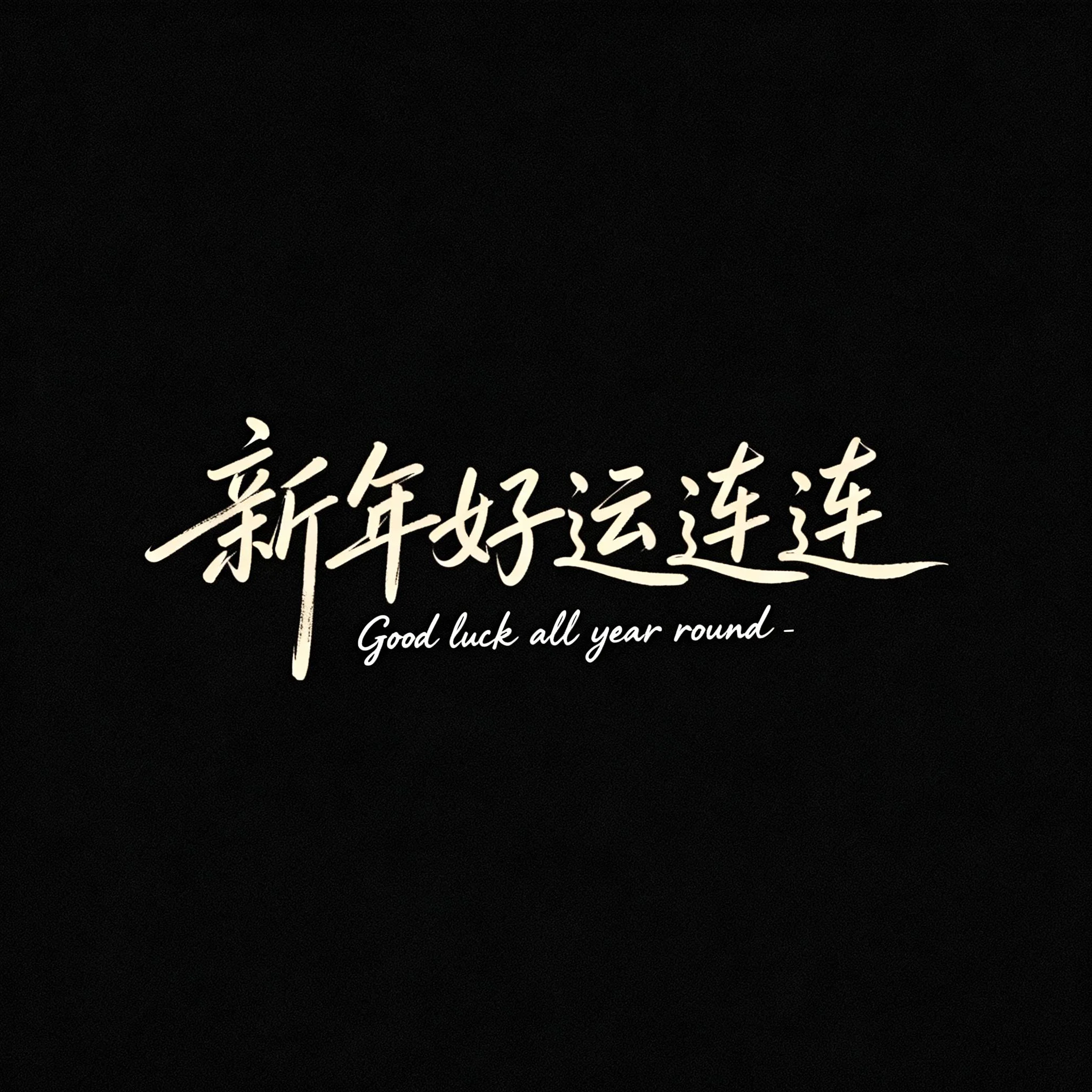 画面风格为简约文艺的手写字体风,背景为纯黑色,营造深邃静谧氛围。主体文字 “新年好运连连” 以流畅自然的手写笔触呈现,字体灵动飘逸,笔画粗细有致,具艺术感。下方小英文装饰同样用随性的手写字体书写,与中文相互呼应。整体画面简洁干净,突出文字传达的浪漫意蕴,达 4K 高清标准。